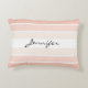 Monogram Coral Rosa Pastel Rand accent Pillow. Pastellkorall rand tändes gradvis från mättad korall till pulverns rosa, vit bakgrund och svart eget namn. Elegant och modern typografi. Trendigets minimalistiska utformning.