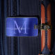 Monogram Cute i marint blått Metall Girly-skript Bagagebricka