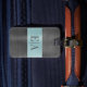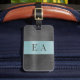En blå och grått-borstad metall-monogramdesign dekorerar bagagetaggen Denna elegant, snyggt och modern design kommer att ge ditt bagage en fin accent. Designad av Blackberry Boulevard.