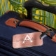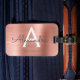 Ro Guld } Rosa Brushed Metall Foil Monogram Namn och Initial Luggage Tag. Den här väskan är märkre för Back to school, Arbete eller Resning.