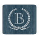 Monogramdesign med lagerkrans och dekoration på blå bakgrund