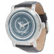 Monogramdesign med dekoration av lagrets andedräkt i rund form på blå bakgrund