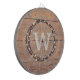 Monogramdesign för jul med andedräkt och snö-dekoration på bakgrunden till rustiskt trä