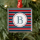 Nautisk temadesign med en dekoration i runda former med stjärnor på blå, röd och vit strimlad bakgrund