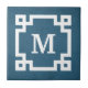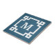 Monogramdesign med grekiska nyckel gräns-dekorationen på grinig blå bakgrund