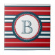 Nautisk temadesign med monokulär dekoration i rund form med rep på blå, röd och vit strimlad bakgrund
