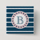 Nautisk temadesign med monogram dekoration i rund form på blå och vit strimlad bakgrund