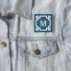 Monogramdesign med grekiska nyckel gräns-dekorationen på grinig blå bakgrund