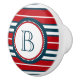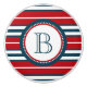 Nautisk temadesign med monokulär dekoration i rund form med rep på blå, röd och vit strimlad bakgrund