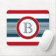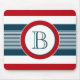 Nautisk temadesign med en dekoration i runda former på blå, vit och röd, rand bakgrund