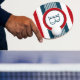 Nautisk temadesign med en dekoration i runda former på blå, vit och röd, rand bakgrund
