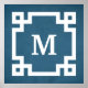 Monogramdesign med grekiska nyckel gräns-dekorationen på grinig blå bakgrund