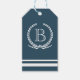 Monogramdesign med lagerkrans och rand dekoration på blå bakgrund