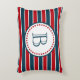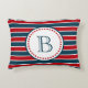 Nautisk temadesign med en dekoration i runda former med stjärnor på blå, röd och vit strimlad bakgrund