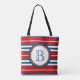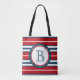 Nautisk temadesign med monokulär dekoration i rund form med rep på blå, röd och vit strimlad bakgrund