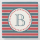 Nautisk temadesign med en dekoration i runda former med stjärnor på blå, röd och vit strimlad bakgrund