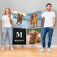 Celebrate the bond between you and your furry best friend with our Monogram Dog Lover Photo Collage Fleece Blanket. This cozy and stylish throw features space for multiple cherished pet photos and your personalized monogram, creating a heartwarming keepsake. Whether draped on your couch or used as a bedtime snuggle essential, this soft fleece blanket is perfect for dog moms, pet parents, or anyone who treasures their pup. Makes a thoughtful gift for birthdays, holidays, or pet memorials. Customizable with your dog's name, photos, and a special message to make it uniquely yours.