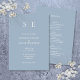 Denna chic, minimalistiska, dammiga blå bröllopsinbjudan kan anpassas med era monograminitialer och bröllopsinformation. All er speciella bröllopsinformation finns på baksidan, inklusive era RSVP, boende och ytterligare detaljer. Designad av Thisisnotme