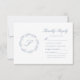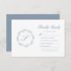 Denna bröllop-utformning har ett monogram av eleganten skript som inledningsvis är inramat av en konsthandning av dammig blå löv på vit bakgrund. Orden "Kinly Reply" visas ovanför anpassadet med dammig blå text, som innehåller utrymme för ett alternativ för OSA av online med URL för webbplats.