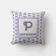 Monogramkudden är ett bra sätt att lägga till en färgstark accent i ditt hem eller skapa en speciell keepé för ett bröllop eller en husuppvärmning. En blå grått polka-punkt mönster visas mot en ljusblå bakgrund på både fram- och baksidan av denna kudde. Brev "P" visas på en kvadrat tillsammans med familjen namn. Brev och ert namn kan snabbt och enkelt vara personlig. Ursprunglig design - C. McGouldrick