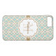 Monogram Eggshell Blue och Guld Quatrefoil Case-Mate iPhone Skal