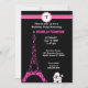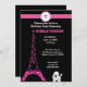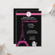 Monogrammad rosa och svart Eiffel Födelsedagsfest inbjudan. Utformningen har Eiffel torn och fransk pudel. Underbar för Paris Thated party. Anpassa med information om party.