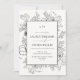 Monogram Elegant Black Blommigt Line Art Bröllop Inbjudningar