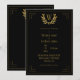Monogram Elegant Black Guld Löv Bröllop Inbjudningar