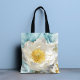 Monogram Elegant Enkel Vit Blomma Lyx Guld Watercolor Tote Bags har en enkel vit blomma med stilrena guld folie accenter på en mjuk blå watercolor bakgrund. Perfekt present till Mors dag, födelsedag, jul, Lärarens dag och bästa vänner. Anpassa med din egen monogram genom att redigera texten i den medföljande textrutan. Designad av ©Evco Studio www.zazzle.com/store/evcostudio
