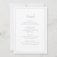 Traditional stil All in One Wedding Investigation med en enkel och klassisk design med dina två första monogram och namn i en elegant kalligrafi inuti ett tunt gräns. På baksidan finns din gästinformation som eliminerar behovet av ett separat visitkort. All design inslag är i dammblått över en vit bakgrund och kan ändras i designredigeringen av verktyg. Dessa eleganter i ett enda bröllop är perfekt för ett formellt bröllop.