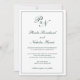 Traditional stil All in One Wedding Investigation med en enkel och klassisk design med dina två första monogram och namn i en elegant kalligrafi inuti ett tunt gräns. På baksidan finns din gästinformation som eliminerar behovet av ett separat visitkort. All inslag är i grönt över en vit bakgrund och kan ändras i designredigeringsverktyget i verktyg. Dessa eleganter i ett enda bröllop är perfekt för ett formellt bröllop.