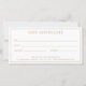 Ett enkelt presentkort för företag med en modern och minimalistisk utformning med gräns. Baksidan har din två första monogramlogotyp omgiven av ett gräns. All text är guld över en vit bakgrund och typsnitt och färg kan ändras till vilket färg som helst. Detta presentkort är underbart för en skönhetssalon eller spa, men det klassiska stil kan användas för vilket företag som helst.