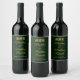 Monogram Elegant Mörk grönt och Guld Bröllop Vinflaska Etikett