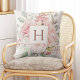 Monogram Elegant Rosa ros Peony Blommigt Bouquet Kudde