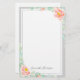 Monogram Eucalyptus Löv Peony Blommigt Peach Grått Brevpapper