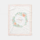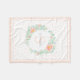 Modern akvarellkonst med eukalyptusgrenar med rik lövverk kombinerat med persikofärgade rosor som bildar en vacker blomsterkrans. Anpassningsbart monogram och namn i en fin ram. Elegant typsnittskombination. Skånsamma pastellfärger, persika, salvia, ljusgrön, jade, kräm, rosafärgad, ljus orange, korall. Persikofärgade prickar och en tunn ram.