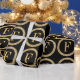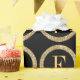 Monogram F guld-färgad på svart bakgrund med guld-cirkeln ram.