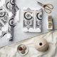 Monogram F Initial Black and White Art Deco Mönster-papper kan anpassas med en bild, namn, text, logotyp eller foto. Byt vit bakgrund till en blå nyans, grönt, gult, orange, rosa, röd, brun och lila. Underbar för att stänga jul-, födelsedag-, babydusch- eller bröllopsgåvor.