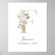 Monogram F Rosa Vitt Blommig Guld Bokstav Nursery Poster