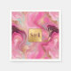 En napkin med faux guld och rosa marmorerad design.