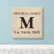 Monogram faux linen burlap rustik chic, inledande canvastryck