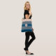 En vacker randig handväska med nyanser av blå, grå och fersken randigt mönster. Monogram med hennes initial.