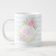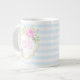 Monogram Finare Rosa ros Blueberry Jumbo Mugg. Finare blommigt monogram med ro och blåbär. Mycket ornat och glatt, med något viktoriskt eller shabby chic utseende och känsla. Pastel färg: rosa, blått, grönt. Ljusblått rand. Rosa och guldmonogram (golden är inte guld utan färg).
