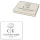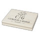 Denna moderna "Monogram"-anpassningsbar gummi frimärke har en blomma, ett par namn och bröllop.
