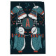 Monogram Folk Art Jul Blå Röda Ugglor Träd Inpackningspapper - #scandinavianxmas #scandinavianchristmas #hyggexmas #hyggechristmas #folkartchristmas #folkart #monogram