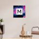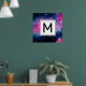 Monogram för Abstrakten rosa & Blue Galaxy & Stars Poster