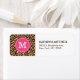 Monogram för Anpassningsbar av rosa och leopard Returadress Etikett