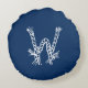 Monogram för blå vit anpassningsbar rund kudde