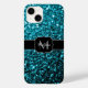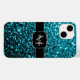 Aqua blue shiny faux glitter sparkles Monogram Fodral-Mate iphone case. Anpassa med ditt första och namn. Unik faux glatt telefonfodral med vackra glatt glamorösa ljusblå glansig glitter-gnistor. Foto av cyan blue sparkles inte glitter!