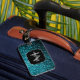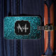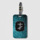 Anpassa märkrn med en sparsam bagagepåse med ditt första och namn. Vackra glamorösa ljusblå glansig glitter-gnistor. Foto av cyan blue sparkles inte glitter!